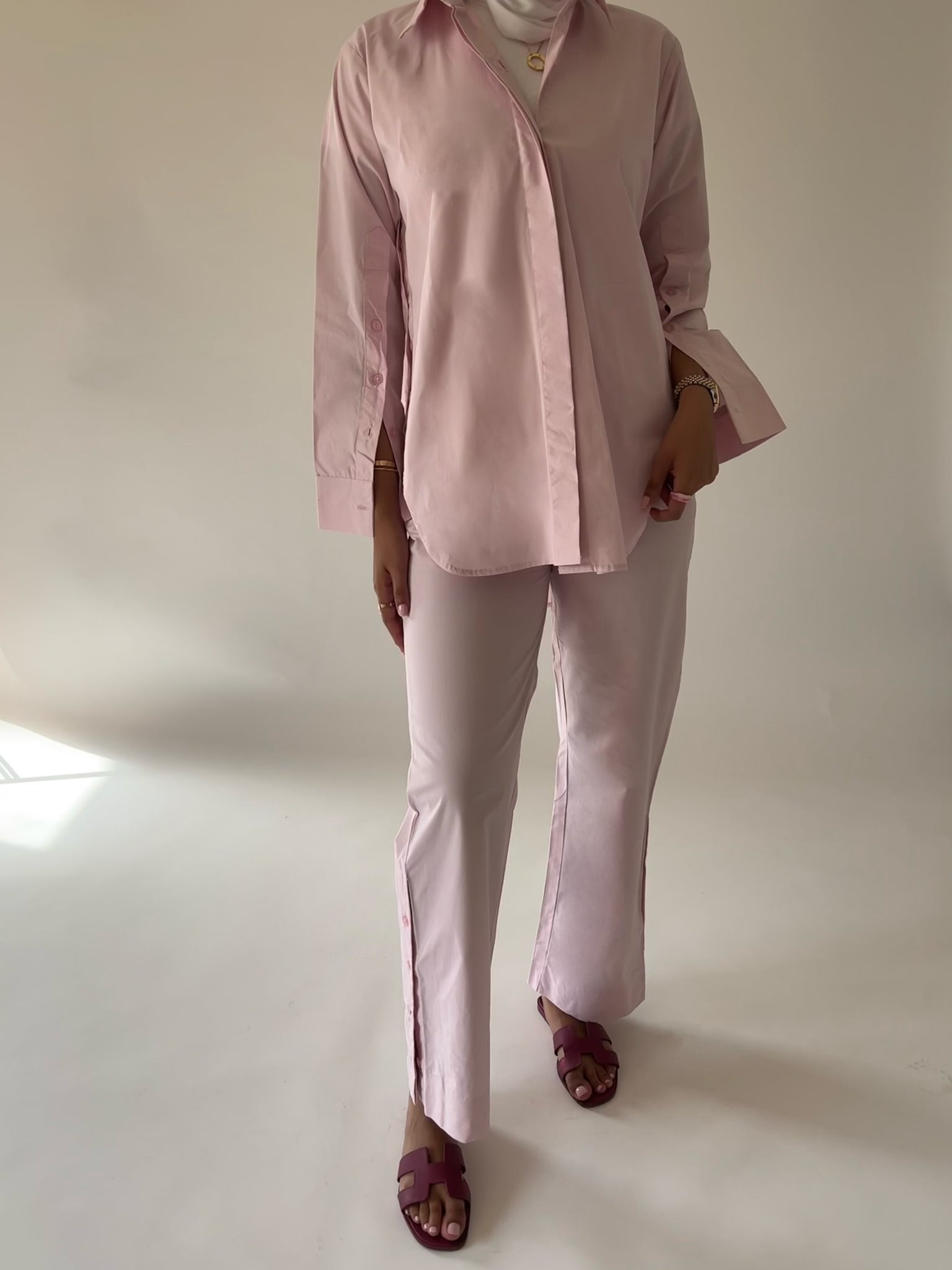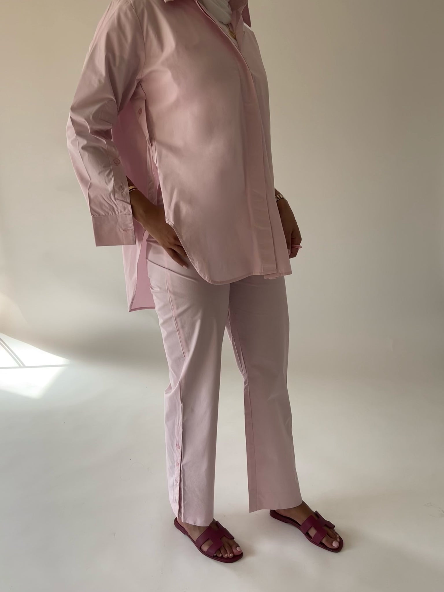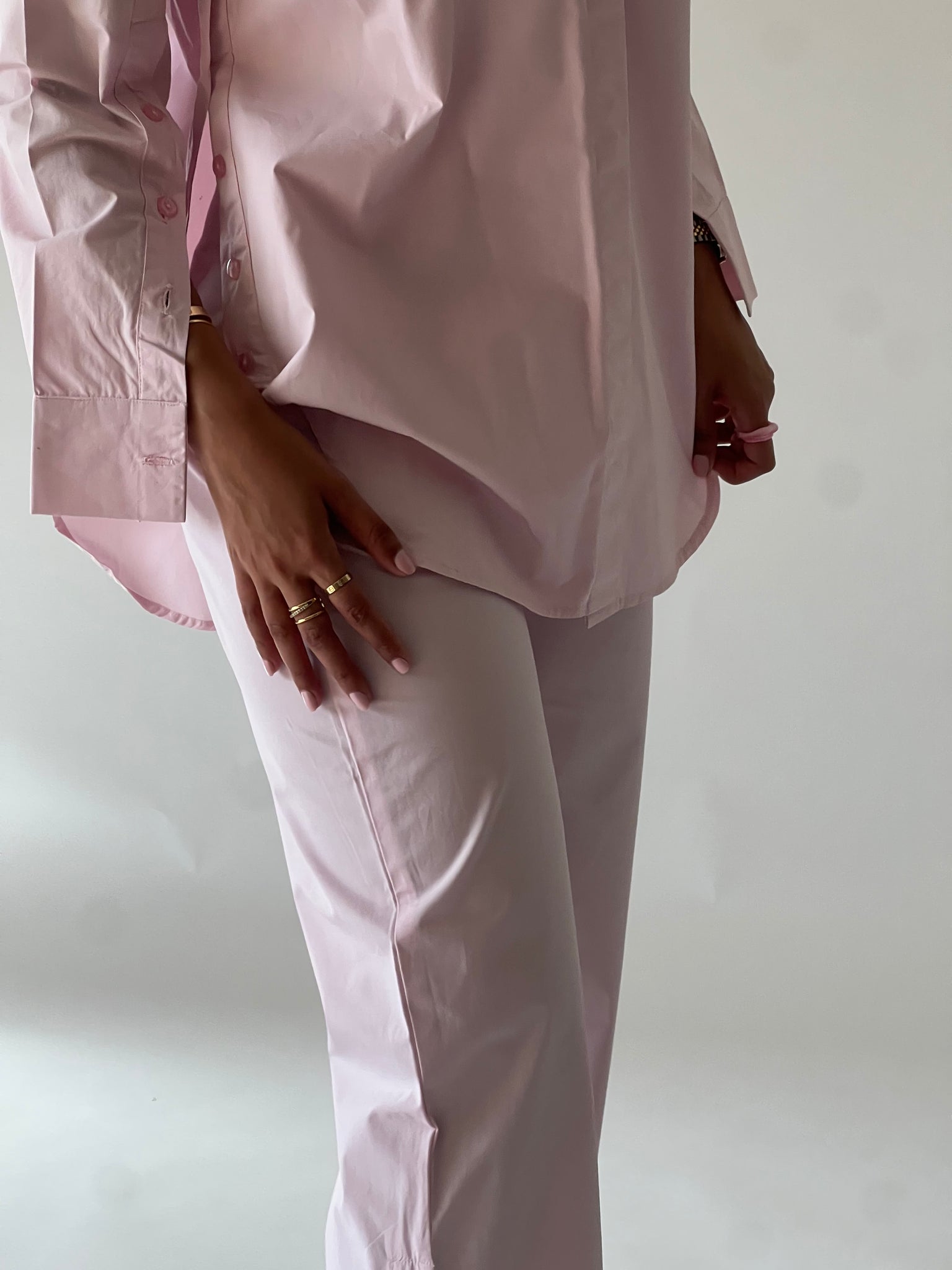 Pink poplin set with buttoned detailing